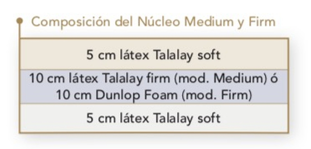 Talalay system: Made by Joseph Anton Talaly in 1956. This process supposes an evolution from the first one, starting with the same material, the latex. It's a process in which the latex is handled before vulcanization, improving the magnificent qualities of the natural latex with which we achieve a higher quality latex for our rest: more porous, adaptable, elastic, soft , natural long lasting and healthy. (Standard latex)