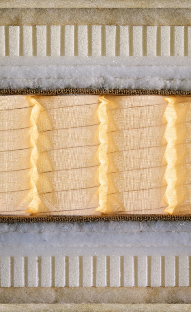 Schramm is the only european manufacterer that still works with pocket spring matresses hand made. But ofcourse, this method is more costly and complicated... but it's essential for quality reasons. Now a days the coated springs are made industrally, but if the springs have been heat-tempered according to the law of this trade, they can't be worked on in this method.Respecting the value of it's quality, Schramm only uses heat-tempered springs, and this means that the matresses with pocket springs will allways need the handcrafted finishes.